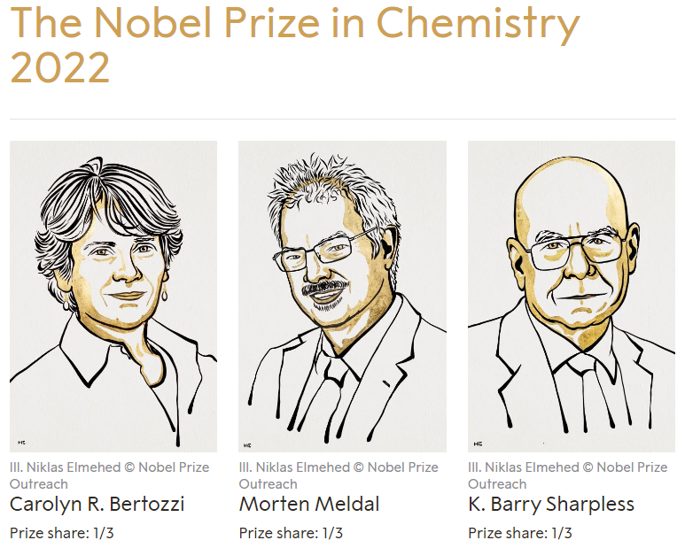 2022年诺贝尔化学奖被授予Carolyn R. Bertozzi,Morten Meldal以及K. Barry Sharpless,理由是“对点击化学和生物正交化学的发展?!?/span>