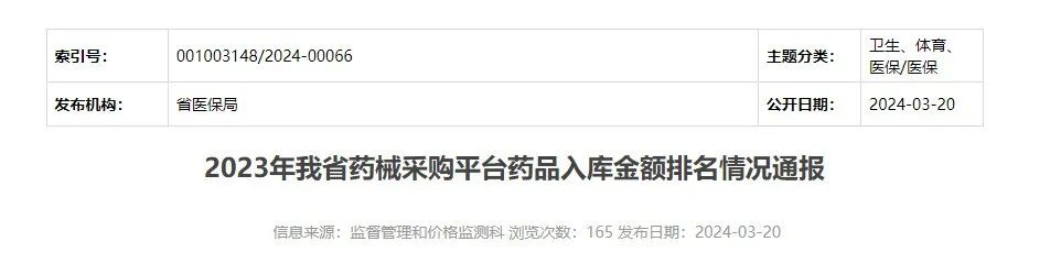 《通报》指出,此次排名是根据浙江省药械采购中心平台2023年1月1日至12月31日期间的药品采购订单,将药品入库金额按通用名、剂型、规格、材质及生产企业汇总,其中部分药品剂型、材质等依据临床使用情况进行合并统计
