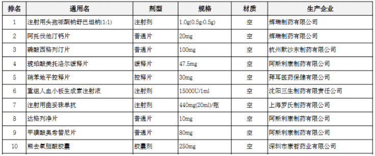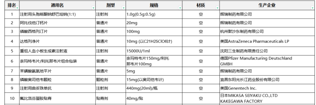 另外,阿斯利康生产的达格列净第八上升到第四。
